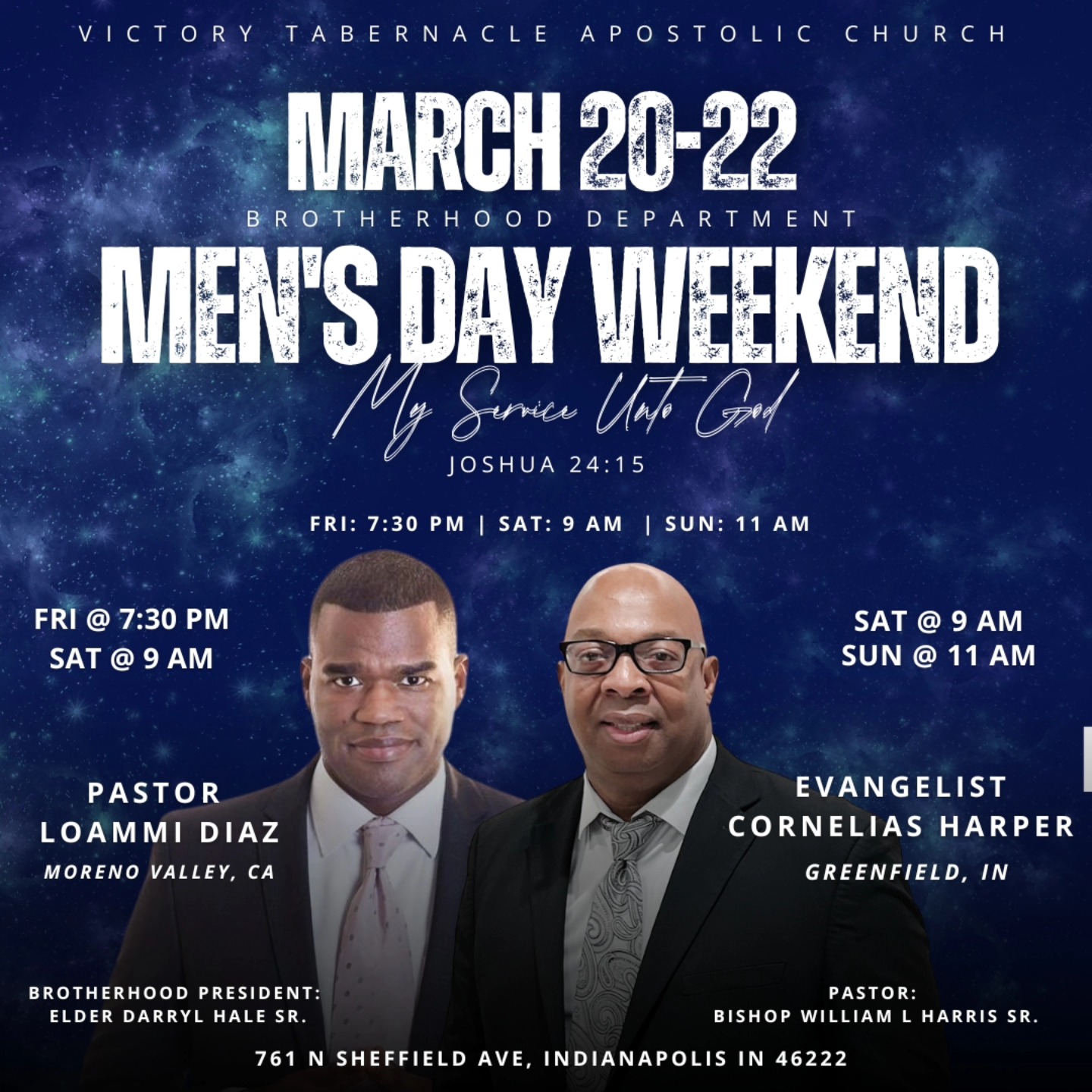 Join us as we hear powerful, life-shaping ministry from Pastor Loammi Diaz (Moreno Valley, CA) — Friday at 7:30 PM & Saturday at 9 AM and Evangelist Cornelias Harper (Greenfield, IN) — Saturday at 9 AM & Sunday at 11 AM